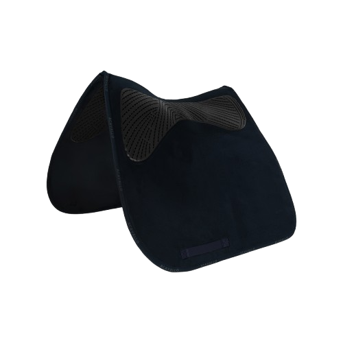 The Acavallo® dressage saddle pad has a classic withers and classic spine shape in suede and twin-sided gel grip - the gel is non-toxic, breathable and hypoallergenic, so will not adversely affect the skin but we always recommend testing it on your horse before riding to ensure they are accepting of the feel of the gel.