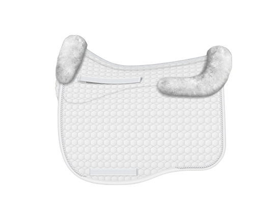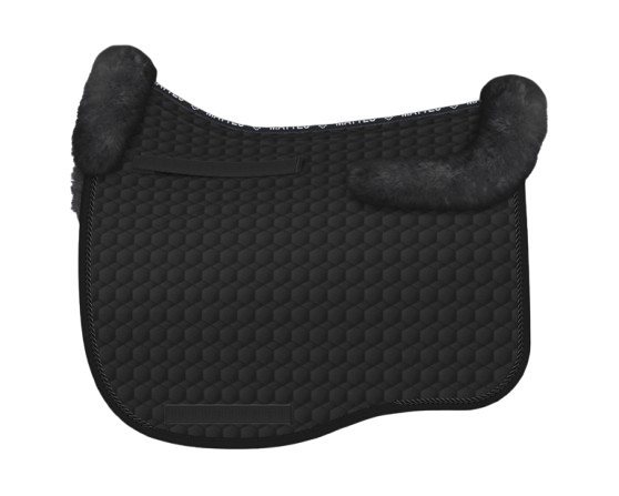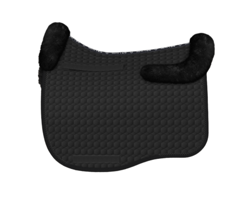 A stylish Eurofit cut Dressage saddlecloth with semi-lined sheepskin panels underneath and top front & rear trim for superior horse comfort.